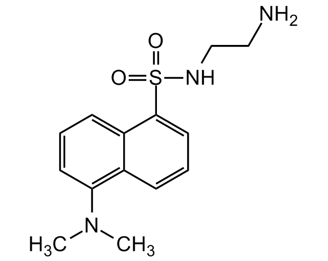 Chemical. CAS: 35060-08-3. Formula: C14H19N3O2S. MW: 293.38. Dansyl ethylenediamine is a lipophilic fluorophore that can be coupled to coarboxylic acids of proteins and other water-soluble polymers. The primary aliphatic amine of dansyl ethylenediamine can be reversibly coupled to aldehydes and ketones to form a Schiff base, which can be reduced to a generate stable amine derivative by sodium borohydride (NaBH4) or sodium cyanoborohydride (NaCNH3). Spectral data: lambdaEx=335nm; lambdaEm=525nm in methanol. Dansyl ethylenediamine has also shown to inhibit human renal dipeptidase (hrDP) irreversibly in a time-dependent manner.