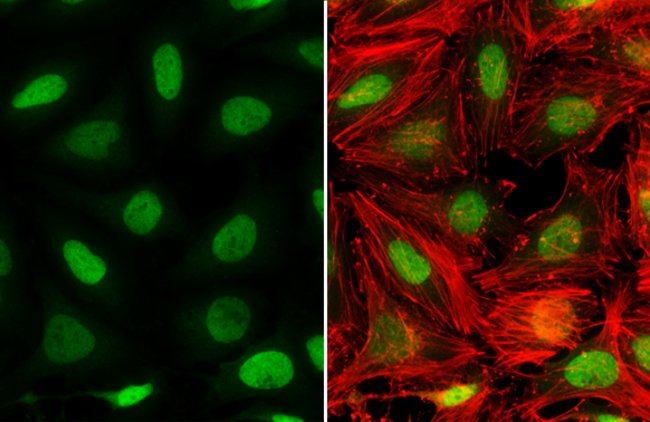 Recommended positive controls: HeLa nucleus. Predicted reactivity: Mouse (85%), Rat (84%), Rhesus Monkey (99%), Bovine (93%). Store product as a concentrated solution. Centrifuge briefly prior to opening the vial.