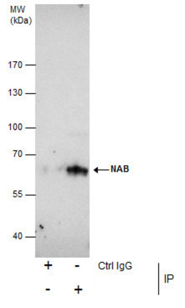 | Recombinant protein encompassing a sequence within the center region of human NAB2. The exact sequence is proprietary. | |