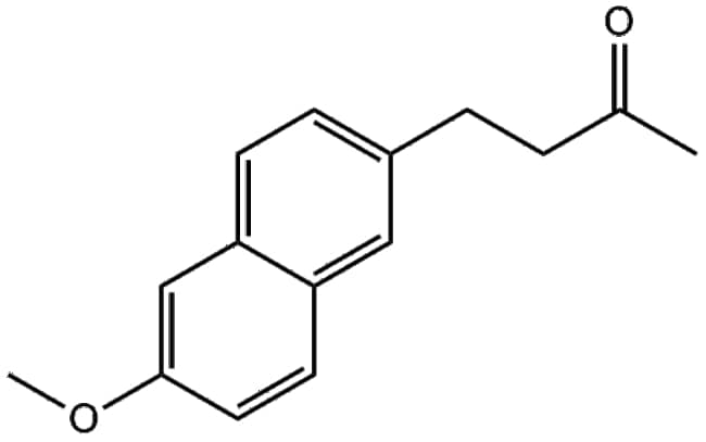 Nabumetone (CAS 42924-53-8) is a non-steroidal anti-inflammatory compound that undergoes hepatic metabolism to yield its active form 6-methoxy-2-naphthylacetic acid (6-MNA) The active metabolite selectively inhibits cyclooxygenase (COX) particularly COX-2 resulting in reduced synthesis of prostaglandins involved in inflammation and pain signaling Nabumetone is commonly utilized in research to study prostaglandin-mediated inflammatory pathways COX enzyme function and the pharmacological modulation of inflammatory responses in preclinical models