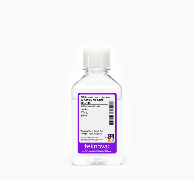 Teknova 5M Sodium Chloride Solution. 500 mL, Sterile.