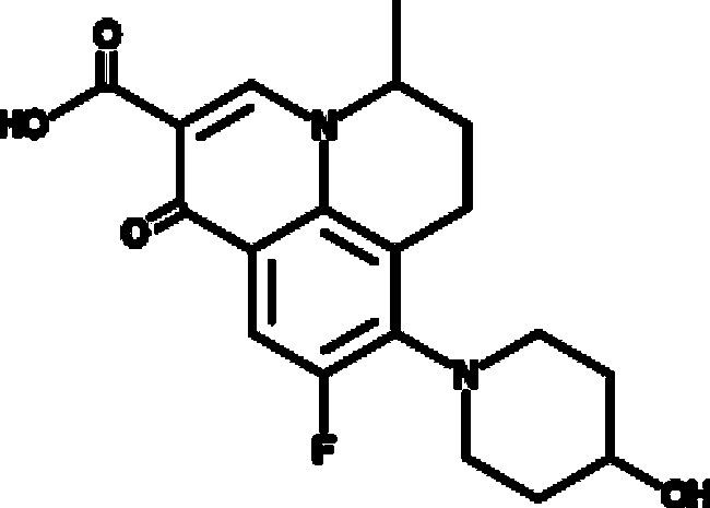 A fluoroquinolone antibiotic; active against clinical isolates of S. aureus, coagulase-negative staphylococci, P. acnes, and P. granulosum (MIC50s = 0.03, 0.06, 0.25, and 0.125 mg/L, respectively); inhibits the activities of DNA gyrase and topoisomerase IV (IC50s = 8.83 and 3.22 mg/L, respectively, for the S. aureus enzymes); inhibits P. acnes-induced increases in the production of IFN-γ, IL-1β, and IL-12p70 in human PBMCs, as well as reduces P. acnes-induced increases in the production of IL-8 and IL-6 in isolated human keratinocytes; reduces the number of skin lesion CFUs in a mouse model of burn wounds infected with S. aureus or P. acnes when applied topically as a cream at 1%