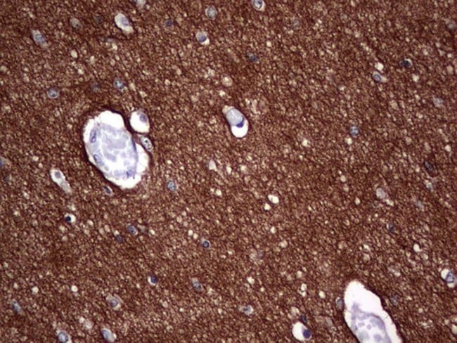 CD56 (NCAM, neural cell adhesion molecule) is a transmembrane glycoprotein of the immunoglobulin family that serves as an adhesive molecule and is ubiquitously expressed in the nervous system in isoforms ranging from 120-180 kDa. CD56 is found on T cells and NK cells, and is involved in cell migration, axonal growth, pathfinding and synaptic plasticity. Polysialic modification results in reduction of CD56-mediated cell adhesion. Through its extracellular region, CD56 mediates homophilic and heterophilic interactions by binding extracellular matrix components such as laminin and integrins. CD56 is expressed on most neuroectodermal derived cell lines, tissues and neoplasms such as retinoblastoma, medulloblastoma, astrocytomas and neuroblastoma. Further, CD56 is a widely used neuroendocrine marker with a high sensitivity for neuroendocrine tumors and ovarian granulosa cell tumors. Diseases associated with CD56 dysfunction include rabies and blastic plasmacytoid dendritic cell neoplasms.Specifications