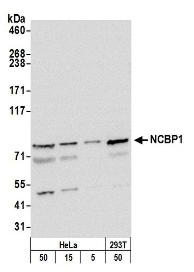 NCBP1/CBP80 Rabbit anti-Human, Mouse, Polyclonal, Bethyl Laboratories
