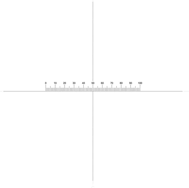 Used as a horizontal and a vertical scale, they are especially useful when interested in measurement in different axis. Horizontal micrometer scale 5mm long in 100 divisions with crosslines. Surface chrome image.