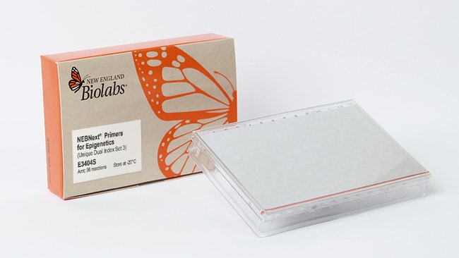 The NEBNext Primers for Epigenetics contain unique dual index primers optimized for E5hmC-seq libraries. This 96 reaction kit contains premixed i5 and i7 8-base index primers, and each well of a 96-well plate contains an i5 and i7 primer pair.