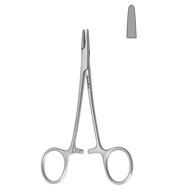 Highly versatile instrument used to hold suture needles or drivers during surgical procedures. Convex jaws with fine serrations for increased grip. MeisterHand build quality ensures the best craftsmanship that is offered. 5.25in total length. Handcrafted with medical grade German steel.