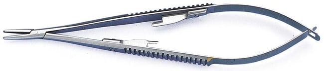 Castroviejo Needle Holders are a surgical instrument used for microsurgery requiring precise control and manipulation of small needles, though they are most commonly used in ophthalmic surgery. Our Castroviejo Needle Holders feature fine tips for grasping and manipulation of small, delicate needles. The jaws can either be serrated (cross-hatched) or smooth. Serrated jaws help prevent slippage and ensures a secure grip on the needle, though this may not always be required. With fragile tissues, a serrated tip may cause excessive trauma or damage to the tissue, and a smooth tip may be preferred. Some synthetic sutures, such as polypropylene or PTFE, are less prone to slipping than natural sutures and may not require a serrated tip. If a surgeon is approximating a delicate tissue layer, a smooth tip may be chosen. The locking mechanism on the spring handles ensures the needle is held firmly and reduces the risk of slipping.