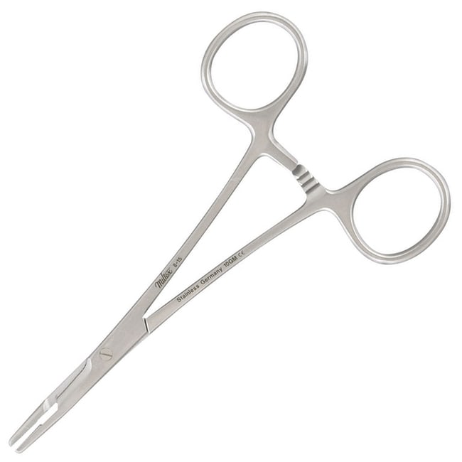 The Miltex Vantage V98-15 Olsen-Hegar Needle Holder have a length of 5in.. These Olsen-Hegar Needle holders are made of mid-grade stainless steel and are a convenient surgical instruments as they have a blade at the end of the jaws.