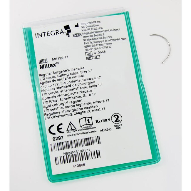 Miltex Regular Surgeon's Needles, 1/2 Circle, Cut Edge, #17, 12/PK, MS192-17