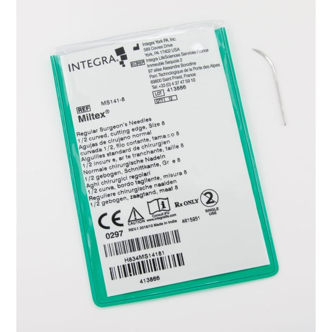 Miltex Regular Surgeon's Needles, 1/2 Curved, Cut Edge, #8, 12/PK, MS140A-8