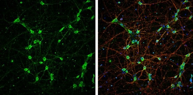 Recommended positive controls: human brain, PC-3, U87-MG, SK-N-SH, mouse cerebellum. Predicted reactivity: Rhesus Monkey (100%). Store product as a concentrated solution. Centrifuge briefly prior to opening the vial.