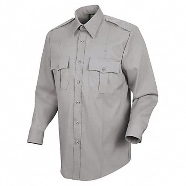 The Horace Small New Dimension Stretch Dress Shirt is a men's long sleeve dress shirt made from a blend of 60% cotton, 37% polyester, and 3% spandex for stretch and comfort. It features a spread collar, front chest pocket, and barrel cuffs. This wrinkle-resistant shirt comes in 8 solid color options and sizes 15-20" neck with 32-36" sleeve lengths. It is machine washable for easy care. The New Dimension Stretch Dress Shirt by Horace Small provides a comfortable fit with professional style.