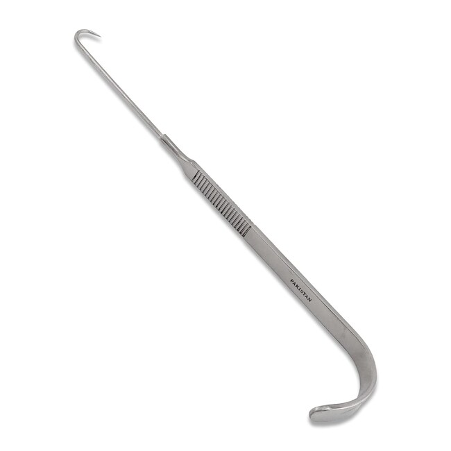 - Fine curved hook tip designed for controlled retraction and separation of soft tissues