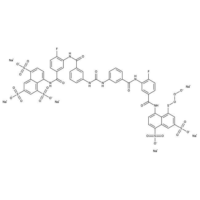 NF 157 is a purinergic receptor antagonist that potently inhibits P2Y11 receptor activity (IC50 = 463 nM). Displays selectivity for P2Y11 and P2X1 receptors over P2Y1, P2Y2, P2X2, P2X3, P2X4 and P2X7 receptors. Inhibits NAD+-induced activation of human granulocytes.