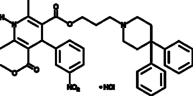 A dihydropyridine that acts as a potent, selective α1A-adrenoceptor antagonist (Ki = 0.16 nM); less potently blocks L- and T-type Ca2+ channels (IC50s = 0.4 and 0.9 µM, respectively)