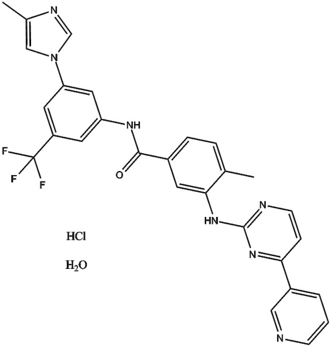 Nilotinib monohydrochloride monohydrate (CAS 923288-90-8) is a selective small molecule inhibitor targeting the BCR-ABL tyrosine kinase By binding to the ATP-binding site of BCR-ABL nilotinib effectively suppresses kinase activity impeding downstream signaling involved in cell proliferation It demonstrates potent inhibitory activity with an IC50 below 30 nM Nilotinib is widely utilized in biomedical research to investigate BCR-ABL-mediated cellular mechanisms and to model therapeutic interventions in chronic myelogenous leukemia and related malignancies