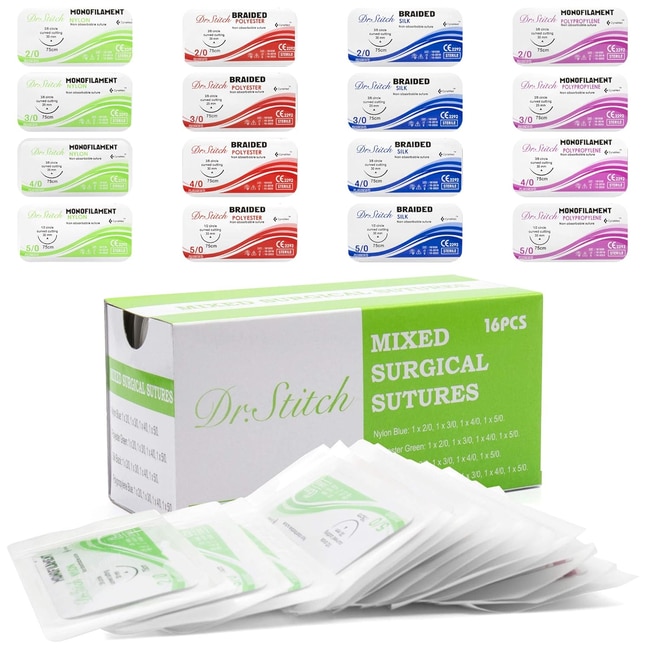 - Includes multiple suture sizes and needle shapes (reverse-cutting, taper, etc.)