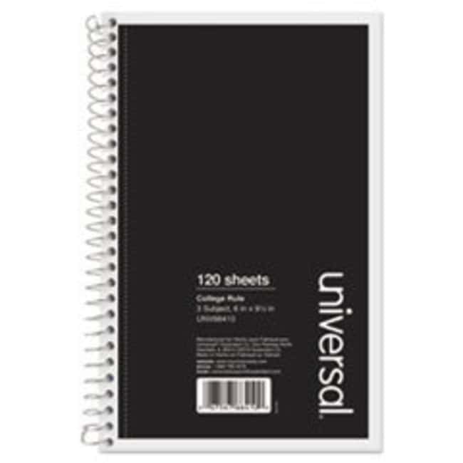Wirebound Notebook, 3-Subject, Medium/College Rule, Black Cover, (120) 9.5 x 6 Sheets