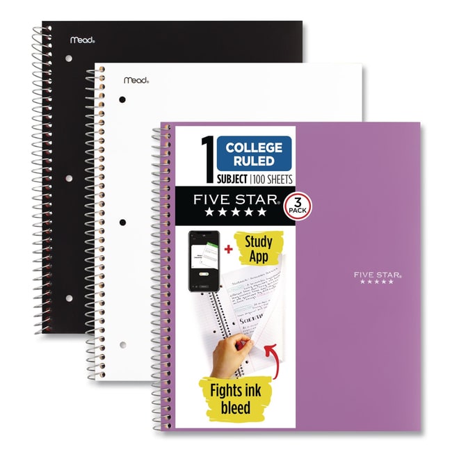 Lasts all year Guaranteed Durable water-resistant poly covers protect your notes all year Reinforced tear-resistant divider pockets keep your loose sheets together Spiral Lock wire binding prevents coil snag and high-quality paper provides excellent ink-bleed resistance Easily inserts into any three-ring binder (sold separately) Scan study and organize your notes with the Five Star Study App Create instant flashcards and sync your notes to Google Drive to access them anywhere from any device Pocket-Sized Indicator- No Book-Binding Type- Spiral Coil Book-Binding Details- Spiral Lock- Flexible Cover Book-Binding Edge- Side
