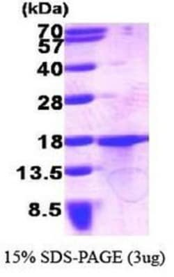 A recombinant protein with a N-Terminal His-tag and corresponding to the amino acids 195-308 of Human GDF-15 The Recombinant Human GDF-15 Protein is derived from E. coli. The Recombinant Human GDF-15 Protein has been validated for the following applications: SDS-Page.