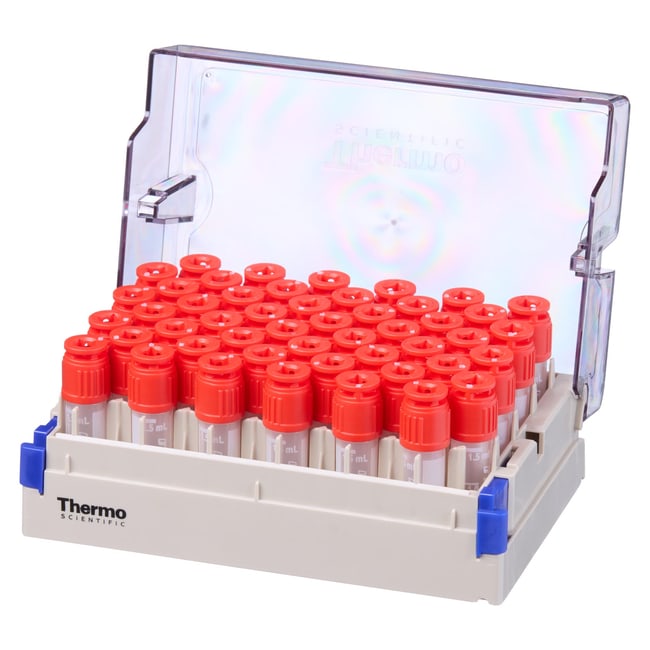 Use the automation friendly Thermo Scientific™ Nunc™ 1.8 mL Externally-threaded Universal Tubes to improve the efficiency and throughput of your sample storage workflow. The latch rack offers ANSI SBS footprint compatible with automation platforms for liquid handling and sample storage. Tubes are available racked or in bulk, with 2D barcodes or non-coded. Empty racks are also available.