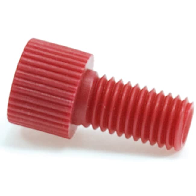 Tubing Connector Fittings, Low Pressure, 1/8th, Delrin, Red with 1/4-28 Screw Threads, for use with Flange Free, polymeric tubing. MicroSolv Brand. 10/PK.
