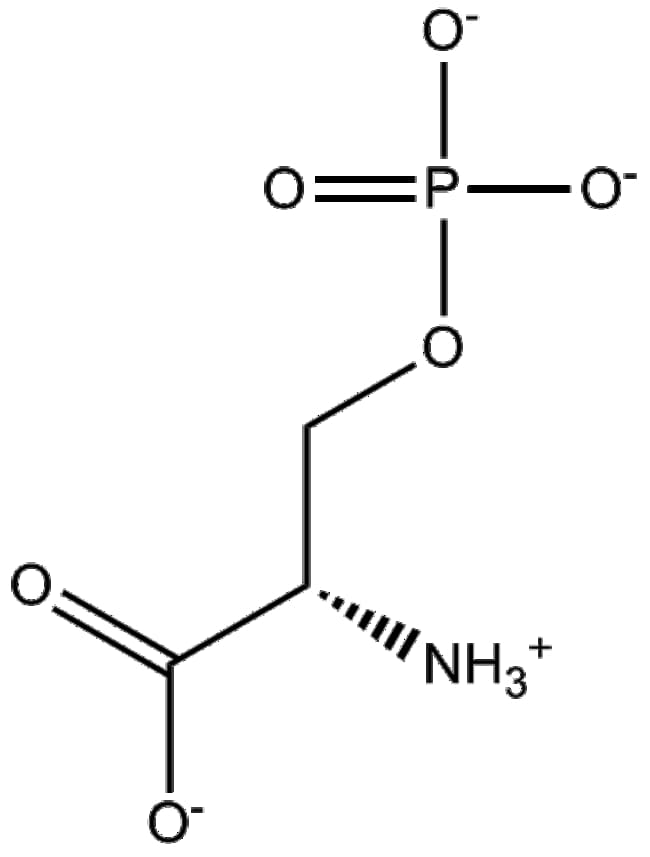 O-Phospho-L-serine (CAS 407-41-0) is a metabolic intermediate in the glutamate pathway and plays a role in the biosynthesis of L-cysteine It exhibits selective modulation of metabotropic glutamate receptors (mGluRs) functioning as an agonist at group III subtypes (mGluR4 mGluR6 mGluR7 mGluR8) while acting as an antagonist at selected receptors within groups I and II (notably mGluR1 and mGluR2) This profile enables O-Phospho-L-serine to serve as a tool compound for investigating glutamate-mediated neuronal signaling pathways and assessing pharmacological effects associated with mGluR modulation in cellular and neurobiological research contexts