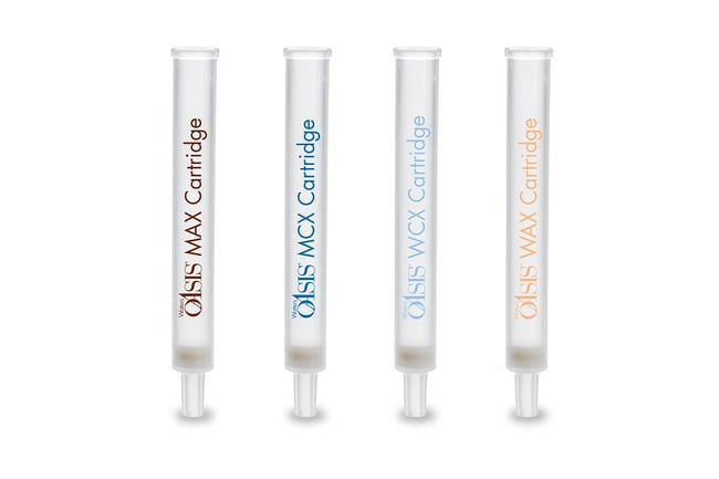 The Oasis sorbent selection flangeless cartridge kit is specifically designed for rapid development of SPE methods for LC/MS analysis. The kit contains 40 cartridges — 10 each of the appropriate Oasis mixed-mode, ion-exchange chemistry: MAX (strong anion exchanger), WAX (weak anion exchanger), MCX (strong cation exchanger), and WCX (weak cation exchanger). Sample preparation method development can be quickly and easily achieved with the use of only two SPE protocols using these chemistries.