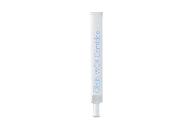 The 1 cc flangeless Oasis WCX cartridges contain the Oasis WCX sorbent, which is a polymeric reversed-phase, weak ion exchange mixed-mode sorbent that has been optimized for fast, simple, and highly selective sample preparation of strong basic compounds and quaternary amines. Since the Oasis WCX sorbent is water wettable, it maintains its capability for higher retention and excellent recoveries even if the sorbent runs dry, which means there is no need to take extraordinary steps to keep the sorbent beds from drying out during the critical steps prior to sample loading. The flangeless configuration allows the cartridges to be closely packed for processing in specialized automated SPE systems.