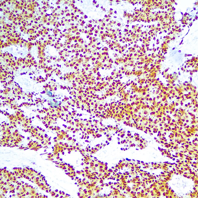 OCT-3/4 (also known as POU5F1) is a transcription factor that has been recognized as fundamental in the maintenance of pluripotency in embryonic stem cells and primordial germ cells. It has been proposed as a useful marker for germ cell tumors (GCT) that exhibit features of pluripotentiality (seminoma/dysgerminoma, germinoma and embryonal carcinoma. OCT-3/4 immunostaining has been shown to be sensitive and specific for GCT, whether in primary gonadal or extragonadal sites or in metastatic lesions.
