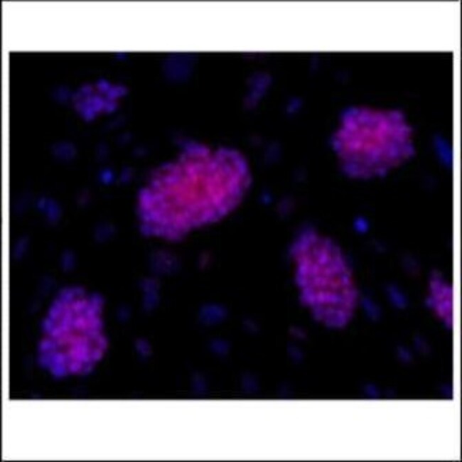 Recommended positive controls: human ESC, mouse ESC, NT2D1. Predicted reactivity: Mouse (83%), Rat (83%), Cat (94%), Pig (93%), Rabbit (90%), Rhesus Monkey (98%), Chimpanzee (100%), Bovine (91%). Store product as a concentrated solution. Centrifuge briefly prior to opening the vial.