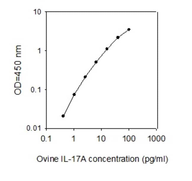 For Serum, Plasma, and Cell Culture Supernatants. Sensitivity: 0.45 pg/ml. Pre-coated 96-well strip plate with additional reagents to allow for use in multiple experiments. Specificity: This ELISA antibody pair recognizes Ovine IL-17A.