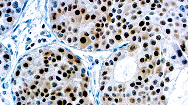 This antibody is specific to a protein of 27 kDa known as p27Kip1, a cell cycle regulatory mitotic inhibitor. Its epitope spans between aa 83-204 of p27. It is highly specific and shows no cross-reaction with other related mitotic inhibitors. p27Kip1 functions as a negative regulator of G1 progression and has been proposed to function as a possible mediator of TGF- induced G1 arrest. p27Kip1 is a candidate tumor suppressor gene. Down regulation of p27Kip1 is found in many types of cancer, and decreased expression of p27Kip1 is associated with poor prognosis in several tumors, including lung, breast, colorectal and prostate.