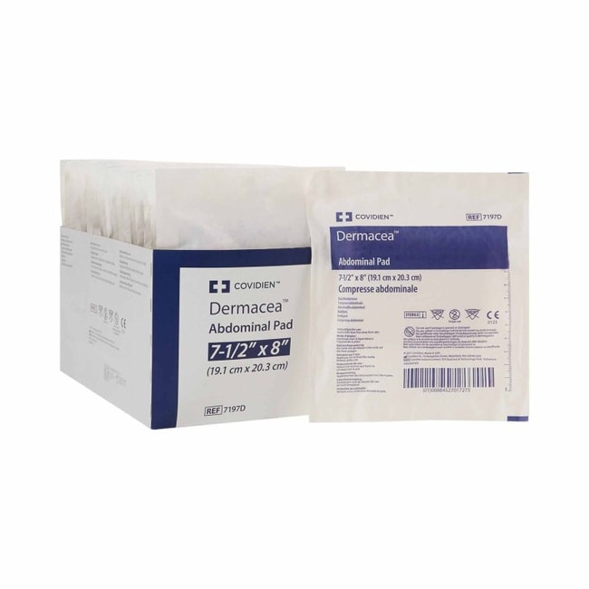 The abdominal pads protect and cushion stomach wounds for faster healing The nonwoven material is gentle against skin A soft outer layer and fluff interior absorb fluids, dispersing them throughout the pad for greater absorbency Sealed edges on all sides prevent rectangle abdominal pads from producing lint These pads are suitable as primary dressings over incisions or as secondary dressings for wounds with higher fluid output Abdominal pads are individually wrapped to maintain sterility 7-1/2 x 8 inches