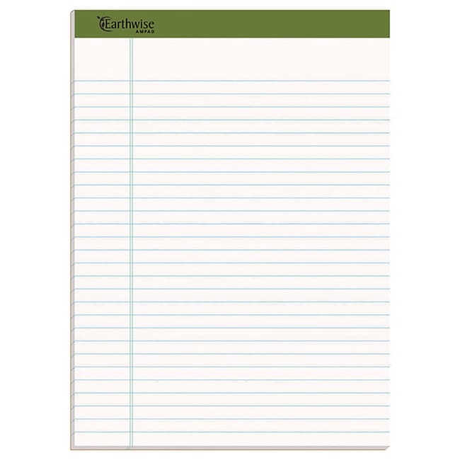 Ampad Earthwise by Ampad Recycled Writing Pad Wide/Legal Rule Politex Green Headband 50 White 8 5x11 75 Sheets Dozen