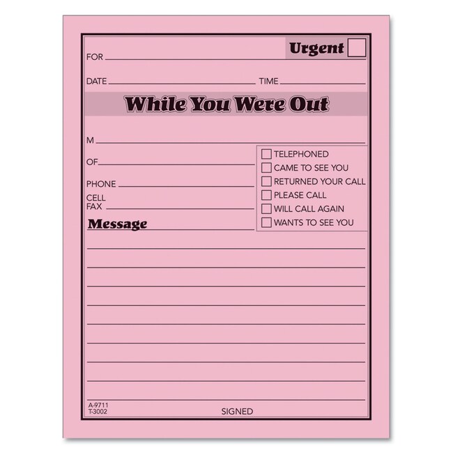 Essendant TOPS Pink Message Pad One-Part (No Copies) 4 25x5 5 50 Forms/Pad 12 Pads/Pack