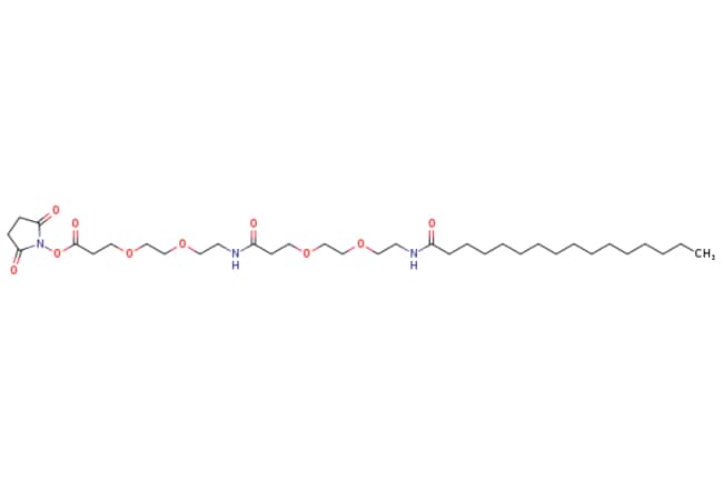 Broadpharm / Palmitamide-PEG2-amide-PEG2-NHS ester / 100mg / 718091822 / BP-28267 / 98.000 / / [null] / 671.873 / C34H61N3O10