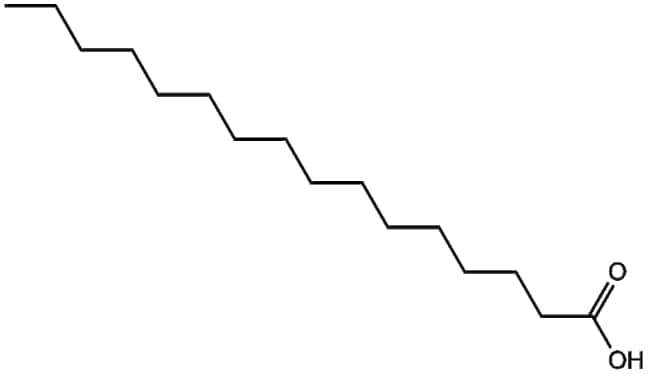 Palmitic acid (CAS 57-10-3) is a saturated long-chain fatty acid naturally isolated from palm tree fruits It is involved biologically as a key constituent of cellular membranes and lipid signaling pathways influencing protein palmitoylation a reversible lipid modification regulating protein localization trafficking and activity Palmitic acid also interacts metabolically with pathways involved in insulin signaling inflammation and lipid metabolism Due to these functional roles it is investigated extensively in biomedical research focusing on metabolic disorders inflammatory responses and cellular signaling mechanisms Store under dry cool and sealed conditions