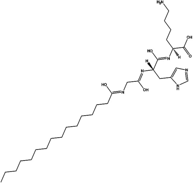 Palmitoyl Tripeptide-1 is a synthetic peptide derivative designed to modulate extracellular matrix (ECM) remodeling by interacting with dermal fibroblast cells It facilitates its biological effects by binding cellular receptors and stimulating intracellular signaling pathways involved in collagen synthesis and ECM reorganization Palmitoyl Tripeptide-1 exerts its biological activity primarily through the promotion of collagen synthesis and modulation of fibroblast biochemical activity Based on these pharmacological properties Palmitoyl Tripeptide-1 holds research potential in studies of skin aging dermal regeneration ECM homeostasis and cellular response dynamics mediated by bioactive peptides