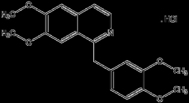 Papaverine . hydrochloride, AdipoGen Life Sciences. Chemical. CAS: 61-25-6. Formula: C20H21NO4 . HCl. MW: 339.4 . 36.5. Synthetic. Originally isolated from Papaver somniferum. Smooth muscle relaxant and vasodilator. Phosphodiesterase PDE10A inhibitor. Antiviral. Antipsychotic. Potential inducer of browning in WAT.