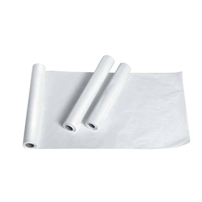 Exam Table Paper: Medline's strong, absorbent table paper protects exam tables from dirt and moisture while offering comfort and protection for patients. Choose from smooth or crepe finish (crepe is softer, quieter and more absorbent). Crepe is also more textured which will help prevent it from sliding on surfaces. Available in standard and deluxe grades. Deluxe grade features a heavier basis weight paper. All rolls are mechanically metered for exact length, and individually poly bagged for cleanliness during shipment and storage. White. Standard Crepe, 21" x 125 ft.