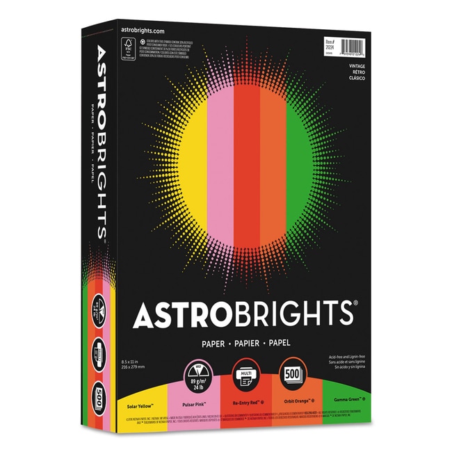 Astrobrights Color Paper -Vintage Assortment 24 lb Bond Weight 8 5x11 Assorted Vintage Colors 500/Ream