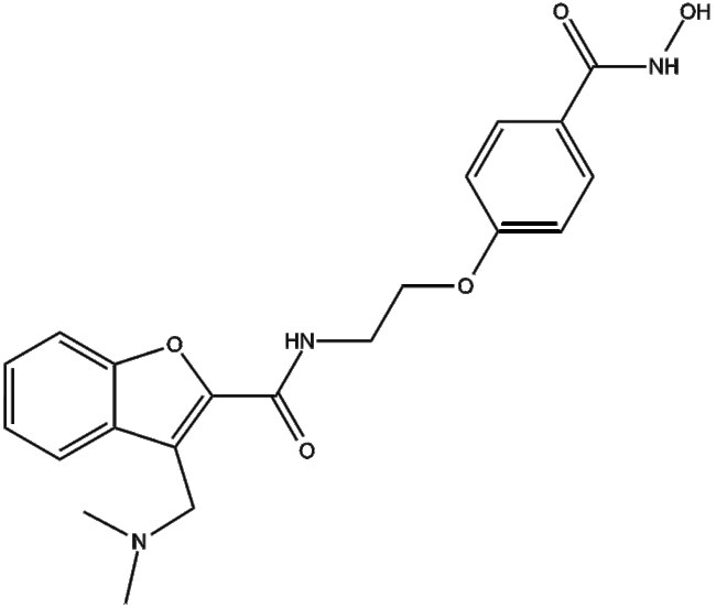 PCI-24781 (CRA-024781 CAS 783355-60-2) is a histone deacetylase (HDAC) inhibitor targeting HDAC1 HDAC2 HDAC3 HDAC6 HDAC8 and HDAC10 with reported Ki values of 7 19 8 2 17 280 and 24 nM respectively HDAC enzymes catalyze the removal of acetyl groups from lysine residues on histone proteins thereby regulating chromatin structure and gene expression PCI-24781 induces dose-dependent hyperacetylation of histones and tubulin in human cancer cells (HCT116 DLD-1) leading to apoptosis via p21 upregulation PARP cleavage and H2AX accumulation PCI-24781 demonstrates antitumor activity against multiple tumor cell lines and in xenograft models highlighting its utility for oncology research