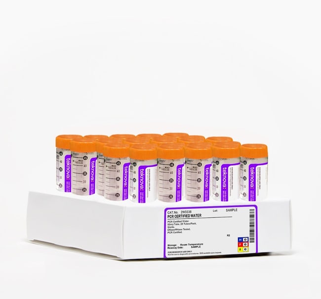 Teknova PCR Certified Water. 50mL Tubes, 25-Pack, DNase/RNase Tested, Sterile.