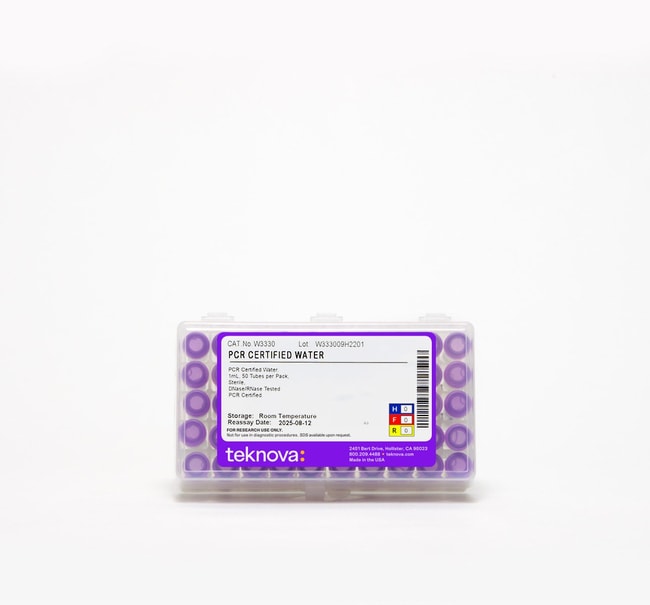 Teknova PCR-Certified Water, D/R Tested, PCR Grade.1 mL per Tube. 50-Pack, Sterile.