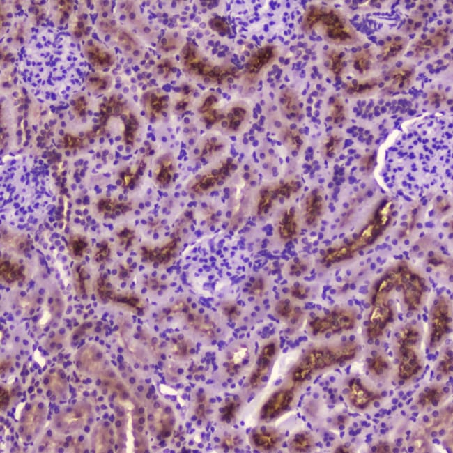 Reconstitute with 0.2 mL of distilled water to yield a concentration of 500 μg/mL. Positive Control - WB: human Hela whole cell, human HepG2 whole cell, human SGC-7901 whole cell, human K562 whole cell, rat testis tissue, mouse testis tissue. IHC: human placenta tissue, rat kidney tissue, mouse kidney tissue. Store at -20°C for one year from date of receipt. After reconstitution, at 4°C for one month. It can also be aliquotted and stored frozen at -20°C for six months. Avoid repeated freeze-thaw cycles.