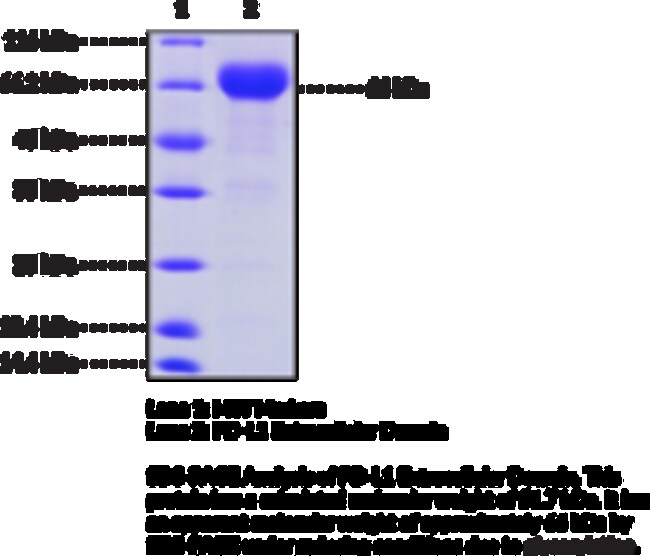Source: Recombinant C-terminal mouse IgG1 Fc-tagged human PD-L1 expressed in HEK293 cells • Amino acids: 19-239 • MW: 51.7 kDa