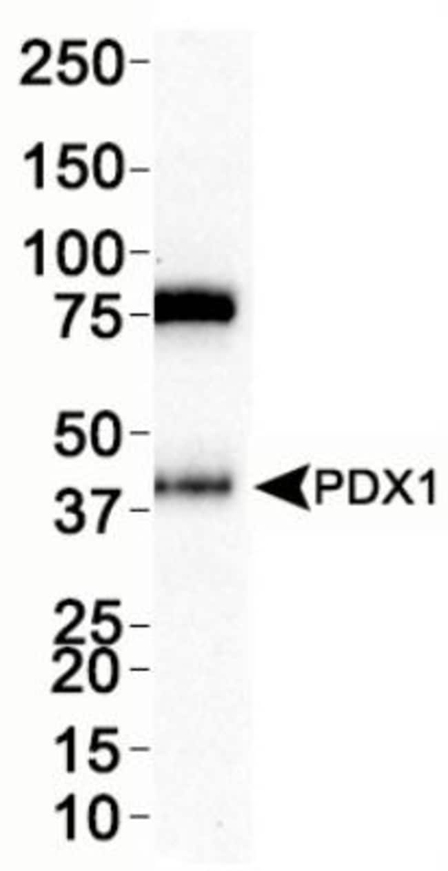 | A synthetic peptide made to a C-terminal portion of the human PDX1 protein (between residues 100-200) [UniProt P52945] | |