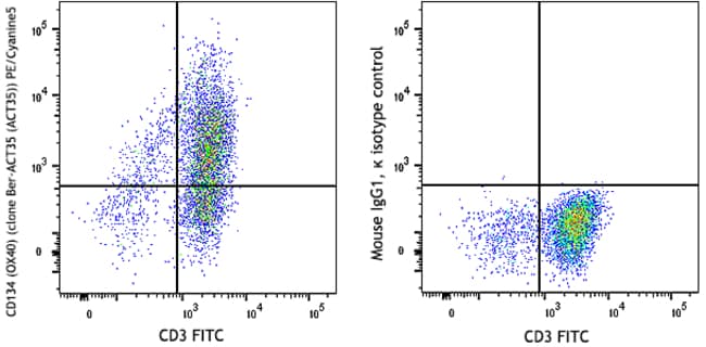 PE/Cyanine5 anti-human CD134 (OX40) [Ber-ACT35 (ACT35)]; Isotype: Mouse IgG1, κ; Reactivity: Human; Apps: FC; Size: 100 tests